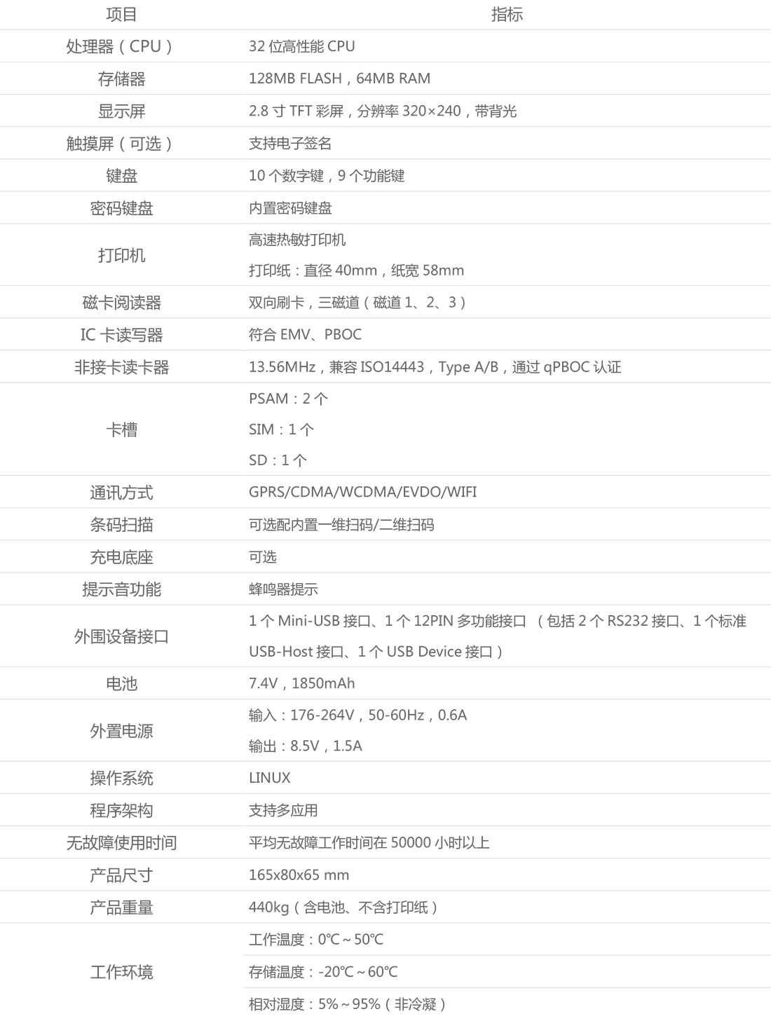 参数规格